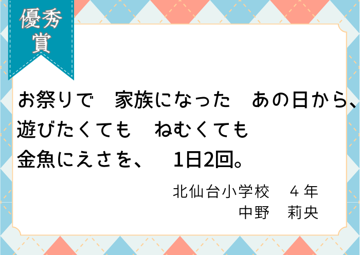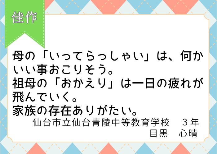 三行詩コンクール【小学生の部】【中学生の部】【一般の部】入選作品15点を掲載しています。